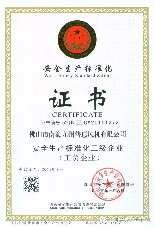 上一年,佛山市安全生产管理协会人员对我司安全生产情况进行审查落实,我司顺利通过佛山市三级安全生产标准化考核,被佛山市安全生产管理协会授予“安全生产标准化三级企业”荣誉称号。